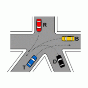 Quando un incrocio è regolato con rotatoria, i veicoli circolanti all'interno dell'anello possono sorpassare sia a destra che a sinistra